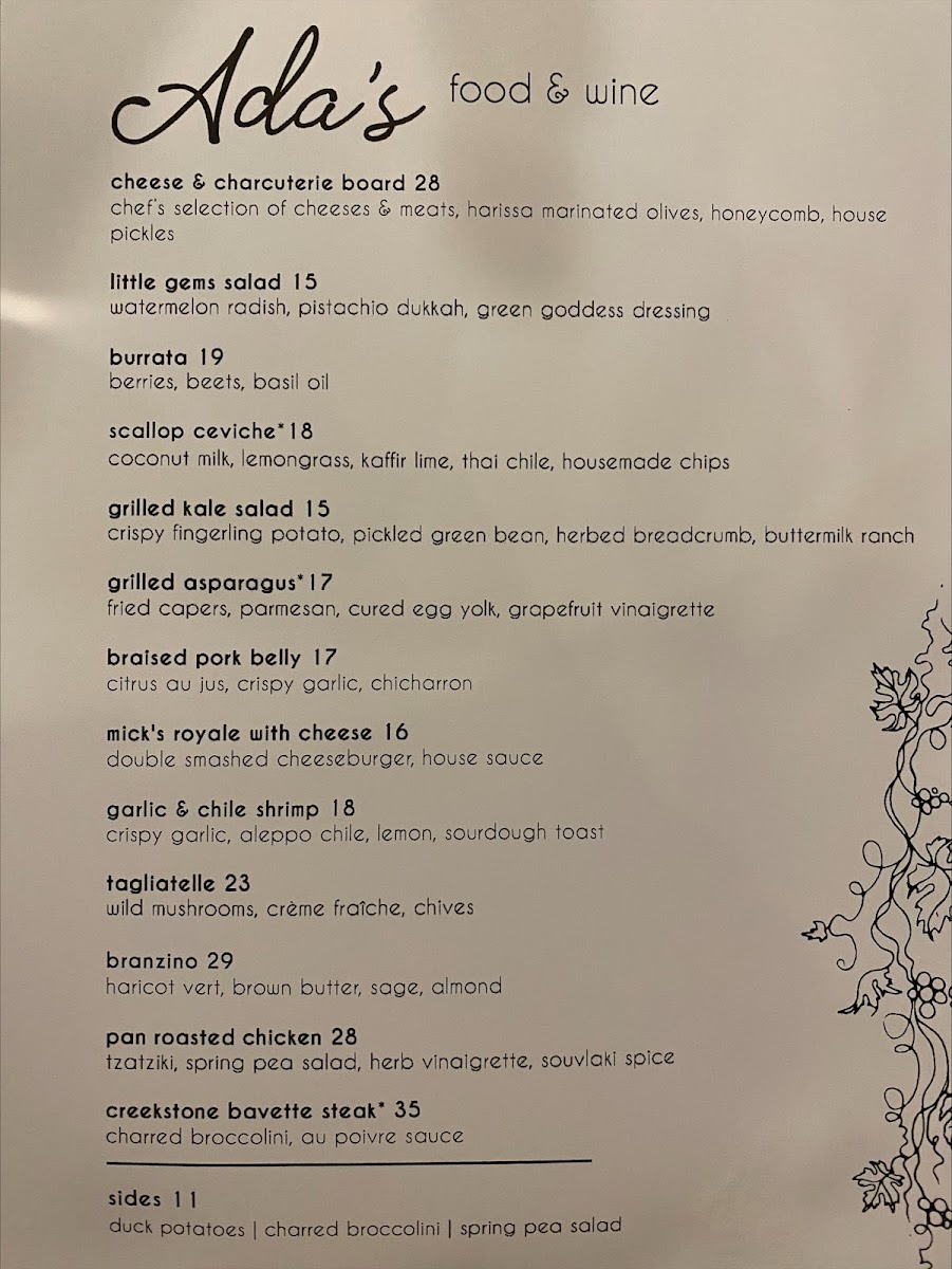 Pair your meal with a carefully curated selection of wines, including unique bottles like the Delinquente Jaybird or the Ch Miraval. Reviewers rave about the friendly staff, making every visit feel special. Whether you're here for date night or a fun outing, Ada's Food & Wine guarantees an unforgettable culinary experience.